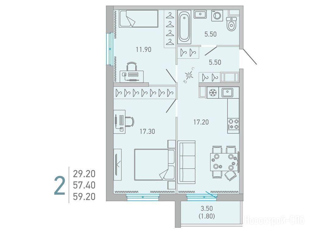 Продается двухкомнатная квартира в новостройке ЖК «LOVO» (Лово) по адресу Ленинградская область, Всеволожский район, Сертолово, ул.Ларина. Общая площадь квартиры - 58.3 кв. м. Тип проекта, по которому построен дом — Монолитно-кирпичный, компания-застройщик — City Solutions. Стоимость квартиры — 10 944 484 руб. Способы оплаты можно уточнить у продавца. Более подробная информация по телефону.