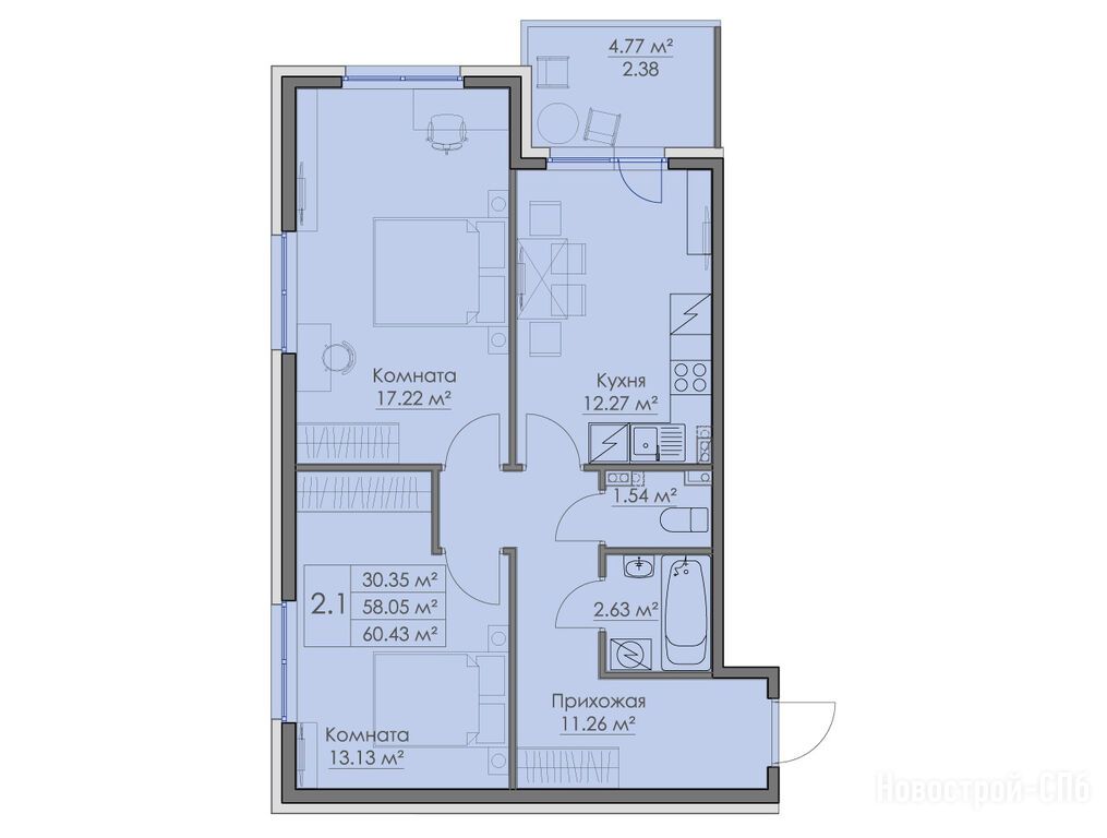 Продается двухкомнатная квартира в новостройке ЖК «Малая Финляндия» по адресу Ленинградская область, Выборгский район, Выборг, наб. Адмирала Чичагова, ул. Тупиковая, Рельефный пр-д, ул. Горная. Общая площадь квартиры - 60.43 кв. м. Тип проекта, по которому построен дом — Монолит, компания-застройщик — КапСтрой. Стоимость квартиры — 12 286 000 руб. Способы оплаты можно уточнить у продавца. Срок сдачи — 4 квартал 2025. Более подробная информация по телефону.