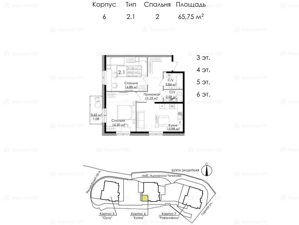Продается двухкомнатная квартира в новостройке ЖК «Малая Финляндия» по адресу Ленинградская область, Выборгский район, Выборг, ул. Горная, корпус Котка (М6). Общая площадь квартиры - 65.75 кв. м. Тип проекта, по которому построен дом — Монолит, компания-застройщик — КапСтрой. Стоимость квартиры — 10 907 500 руб. Способы оплаты можно уточнить у продавца. Более подробная информация по телефону.