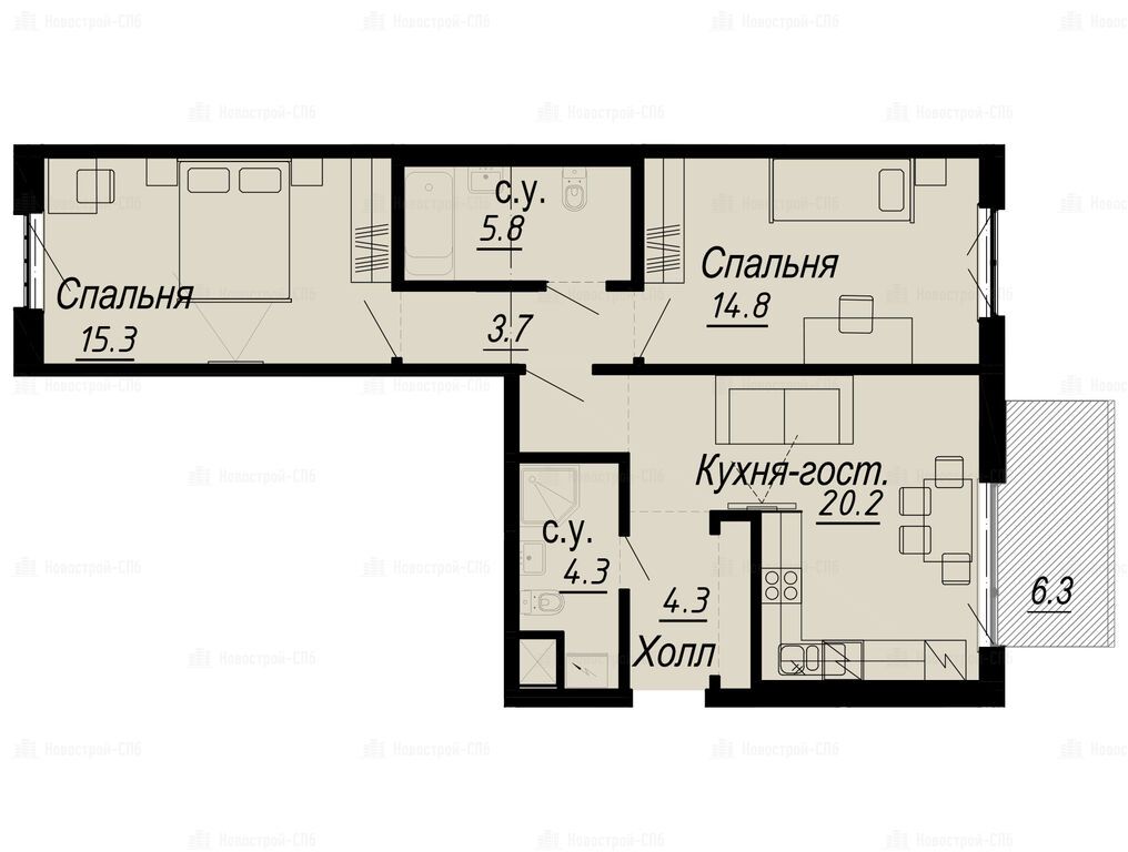 Квартиры, конечно, в процессе, еще пахнет свежим бетоном. Не без косяков в планировке, конечно, есть над чем подумать, но в целом очень даже неплохо! В каждой квартире и алюминиевые, и деревянные окна, да еще и балконные модули - прям шик! Цены, правда, кусаются - от 20 млн. рублей… Зато метро рядом, это огромный плюс, паркинг двухъярусный, места должно хватить всем, и транспорта вокруг много. Если бы я брал, то однозначно выбирал бы квартиру с видом на Карповку - там, наверное, и тише, и красивее.