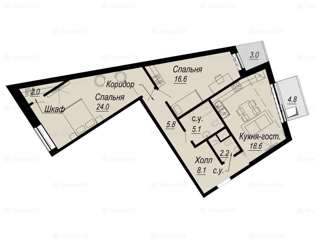 Квартиры, конечно, в процессе, еще пахнет свежим бетоном. Не без косяков в планировке, конечно, есть над чем подумать, но в целом очень даже неплохо! В каждой квартире и алюминиевые, и деревянные окна, да еще и балконные модули - прям шик! Цены, правда, кусаются - от 20 млн. рублей… Зато метро рядом, это огромный плюс, паркинг двухъярусный, места должно хватить всем, и транспорта вокруг много. Если бы я брал, то однозначно выбирал бы квартиру с видом на Карповку - там, наверное, и тише, и красивее.