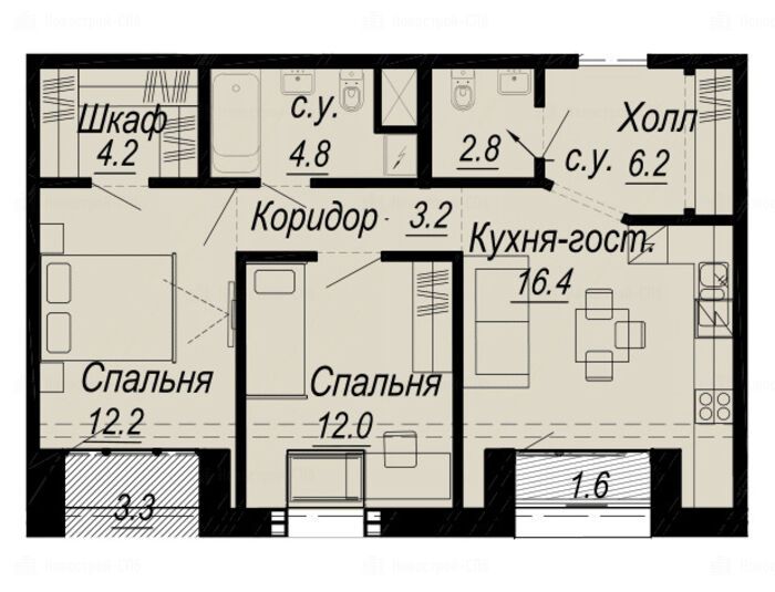 Квартиры, конечно, в процессе, еще пахнет свежим бетоном. Не без косяков в планировке, конечно, есть над чем подумать, но в целом очень даже неплохо! В каждой квартире и алюминиевые, и деревянные окна, да еще и балконные модули - прям шик! Цены, правда, кусаются - от 20 млн. рублей… Зато метро рядом, это огромный плюс, паркинг двухъярусный, места должно хватить всем, и транспорта вокруг много. Если бы я брал, то однозначно выбирал бы квартиру с видом на Карповку - там, наверное, и тише, и красивее.