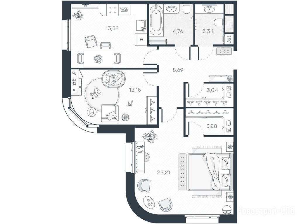 Планировки здесь просто находка! Я искал квартиру долго, но именно здесь нашел идеальную трешку с продуманным пространством. Никаких “мертвых” зон, всё очень функционально.