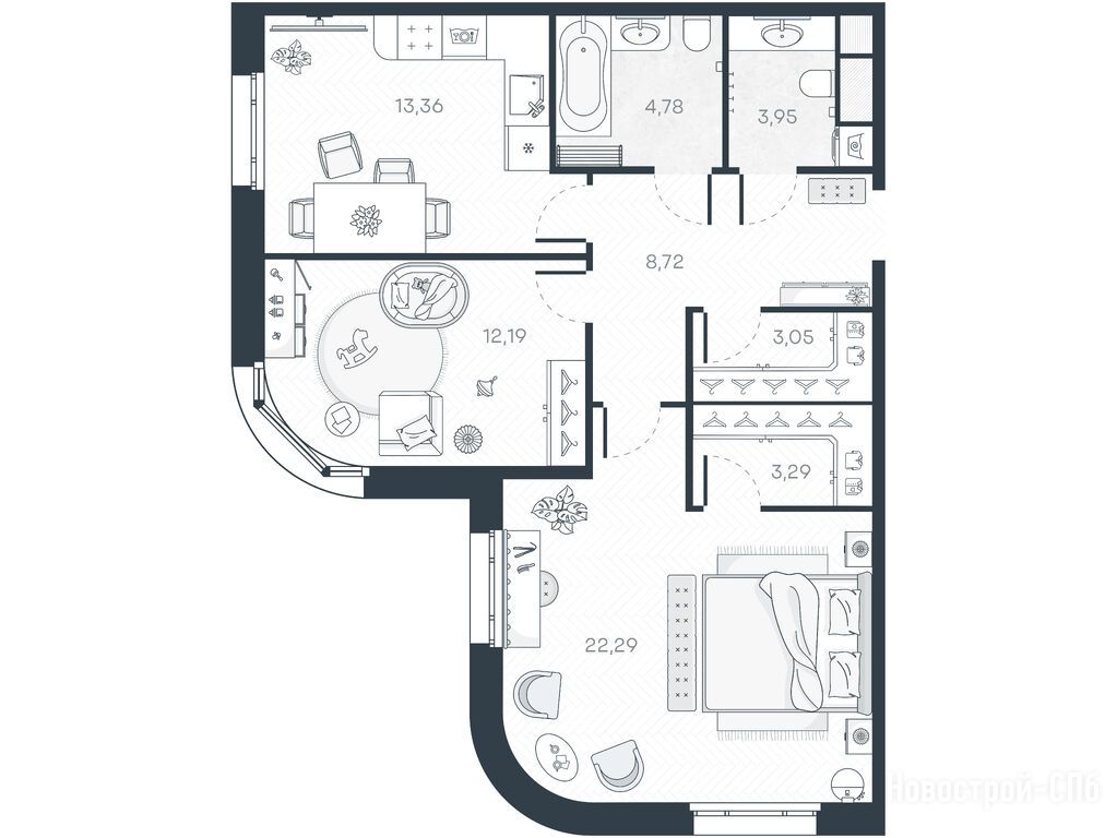 Планировки здесь просто находка! Я искал квартиру долго, но именно здесь нашел идеальную трешку с продуманным пространством. Никаких “мертвых” зон, всё очень функционально.