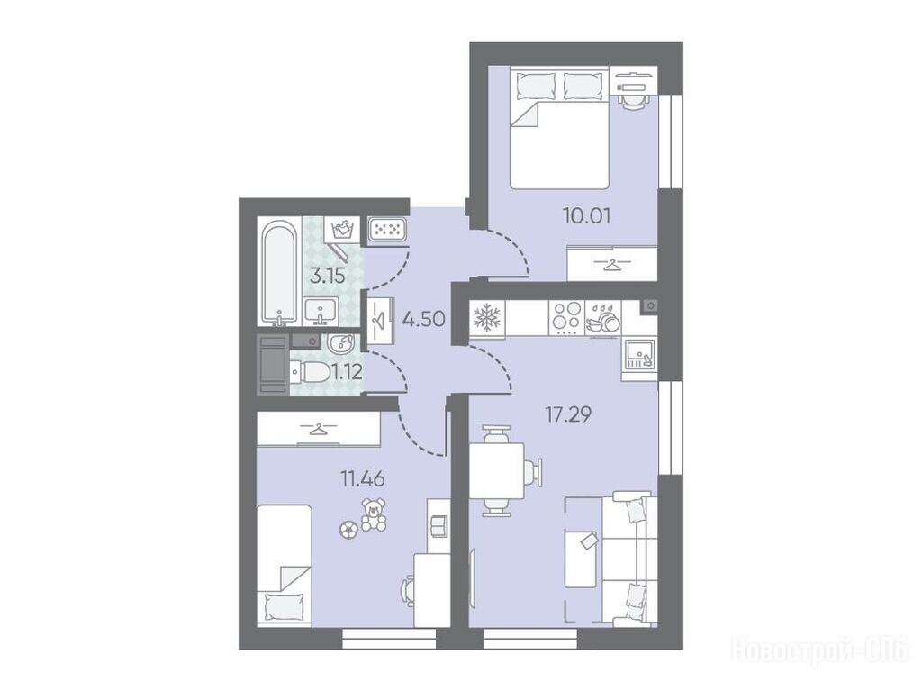 Продается двухкомнатная квартира в новостройке ЖК «Морская миля» по адресу Санкт-Петербург, Красносельский, ул. Маршала Казакова, 21. Общая площадь квартиры - 48.03 кв. м. Тип проекта, по которому построен дом — Монолитно-кирпичный, компания-застройщик — ООО «ЛСР. Недвижимость–Северо-Запад». Стоимость квартиры — 15 235 116 руб. Способы оплаты можно уточнить у продавца. Срок сдачи — 3 квартал 2027. Более подробная информация по телефону.