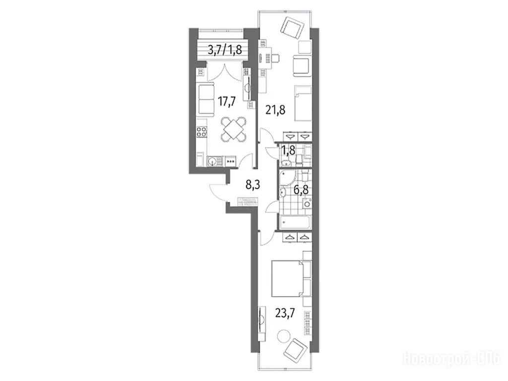 Расположение 2-комн. квартиры