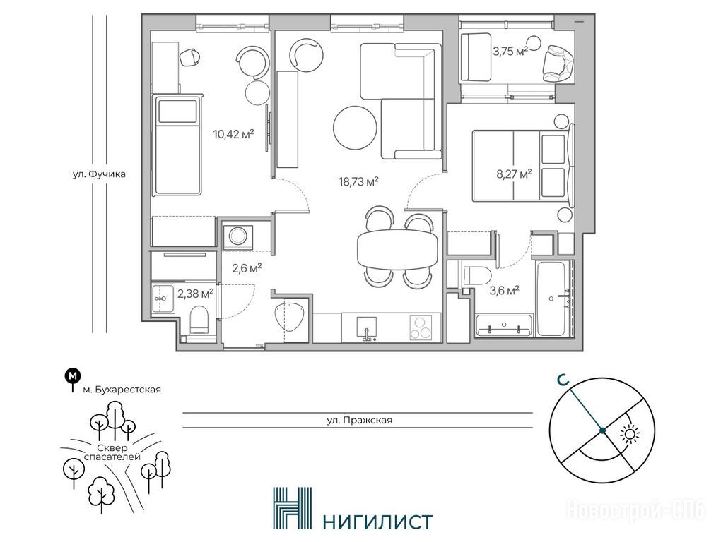 Продается двухкомнатная квартира в новостройке ЖК «Нигилист» по адресу Санкт-Петербург, Фрунзенский, ул. Фучика, д. 17В. Общая площадь квартиры - 47.38 кв. м. Тип проекта, по которому построен дом — Монолит, компания-застройщик — Bau City Development (Бау Сити Девелопмент). Стоимость квартиры — 17 578 155 руб. Способы оплаты можно уточнить у продавца. Срок сдачи — 1 квартал 2028. Более подробная информация по телефону.
