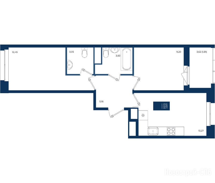Продается двухкомнатная квартира в новостройке ЖК «Новатория» по адресу Ленинградская область, Ломоносовский район, Аннинское, Новоселье пос., ул. Центральная, ЖК «Новатория», корпус А. Общая площадь квартиры - 48.77 кв. м. Тип проекта, по которому построен дом — Монолитно-кирпичный, компания-застройщик — Новастрой, СЗ Новый дом. Стоимость квартиры — 8 388 440 руб. Способы оплаты можно уточнить у продавца. Срок сдачи — 3 квартал 2026. Более подробная информация по телефону.