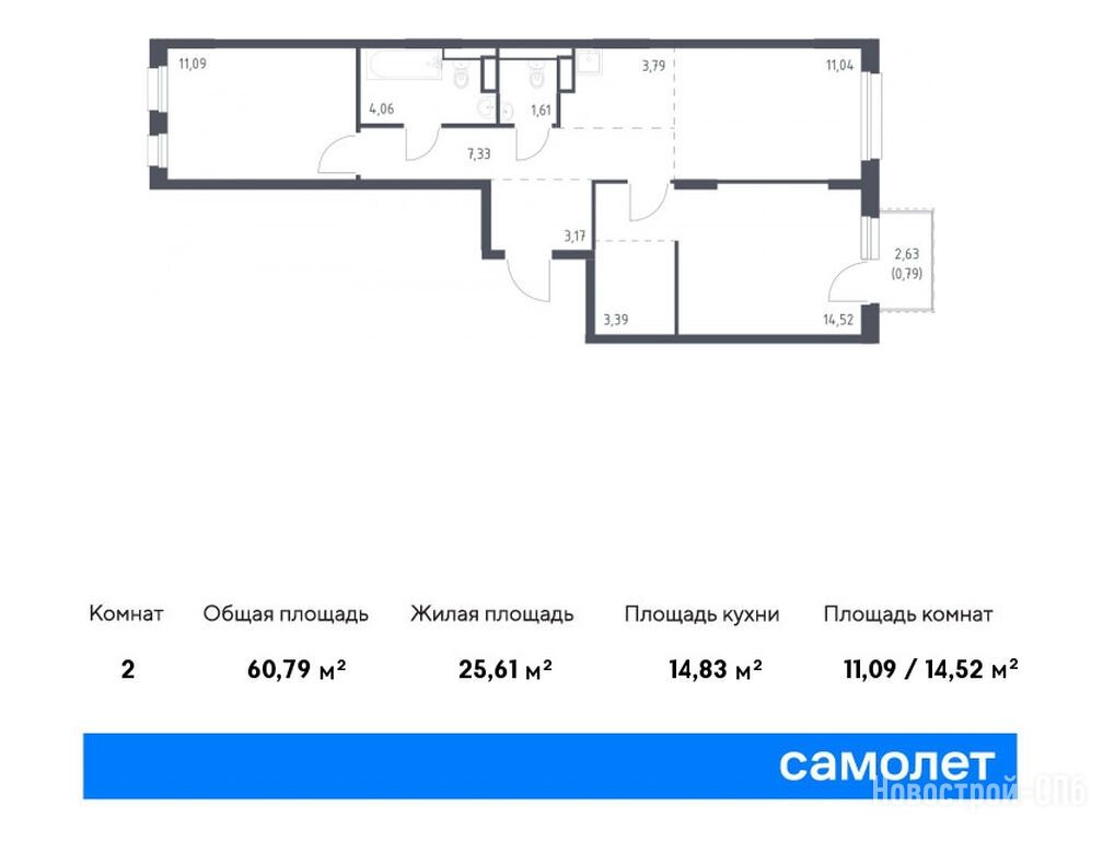 Продается двухкомнатная квартира в новостройке ЖК «Новые Лаврики» по адресу Ленинградская область, Всеволожский район, Мурино, Мурино, ЖК «Новые Лаврики». Общая площадь квартиры - 60.79 кв. м. Тип проекта, по которому построен дом — Монолитно-кирпичный, компания-застройщик — ООО СЗ САМОЛЕТ-ЛАВРИКИ, Самолет. Стоимость квартиры — 11 509 895 руб. Способы оплаты можно уточнить у продавца. Срок сдачи — 4 квартал 2026. Более подробная информация по телефону.