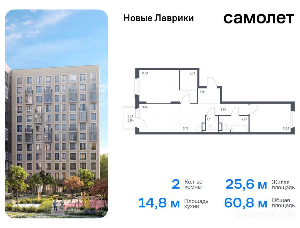 Продается двухкомнатная квартира в новостройке ЖК «Новые Лаврики» по адресу Ленинградская область, Всеволожский район, Мурино, Мурино, ЖК «Новые Лаврики». Общая площадь квартиры - 60.8 кв. м. Тип проекта, по которому построен дом — Монолитно-кирпичный, компания-застройщик — ООО СЗ САМОЛЕТ-ЛАВРИКИ, Самолет. Стоимость квартиры — 12 592 410 руб. Способы оплаты можно уточнить у продавца. Срок сдачи — 4 квартал 2026. Более подробная информация по телефону.