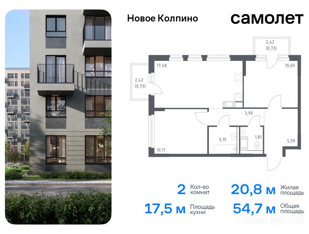 Продается двухкомнатная квартира в новостройке ЖК «Новое Колпино» по адресу Санкт-Петербург, Колпинский, Колпино, ЖК «Новое Колпино», корп. 33. Общая площадь квартиры - 54.72 кв. м. Тип проекта, по которому построен дом — Монолитно-кирпичный, компания-застройщик — ООО «СПб Реновация», Самолет. Стоимость квартиры — 8 987 268 руб. Способы оплаты можно уточнить у продавца. Срок сдачи — 1 квартал 2026. Более подробная информация по телефону.