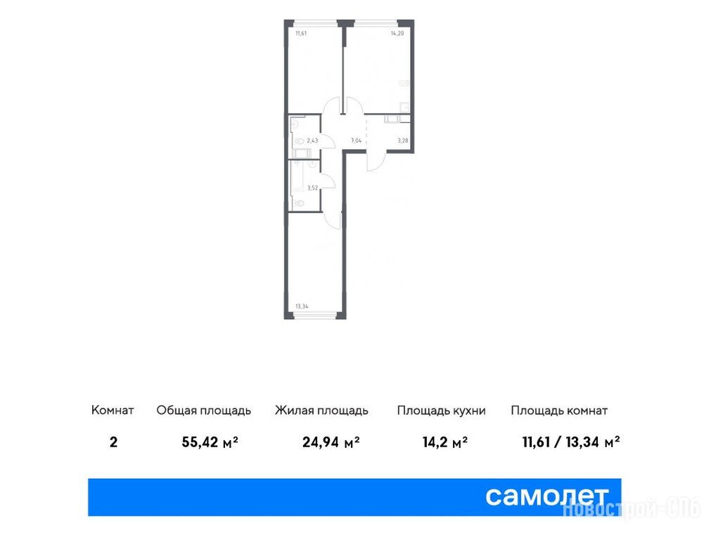 Продается двухкомнатная квартира в новостройке ЖК «Новое Колпино» по адресу Санкт-Петербург, Колпинский, Колпино, ЖК «Новое Колпино», корп. 33. Общая площадь квартиры - 55.42 кв. м. Тип проекта, по которому построен дом — Монолитно-кирпичный, компания-застройщик — ООО «СПб Реновация», Самолет. Стоимость квартиры — 10 950 131 руб. Способы оплаты можно уточнить у продавца. Срок сдачи — 1 квартал 2026. Более подробная информация по телефону.