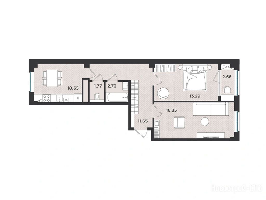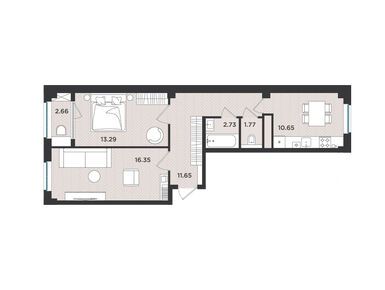2-комн. квартира, 59.10 м2, 2 этаж