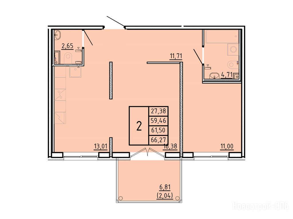 2-комн. квартира, 59.46 м