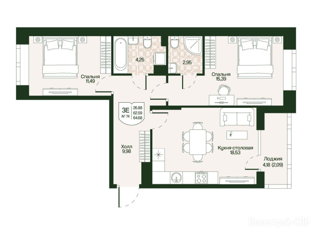 Продается двухкомнатная квартира в новостройке ЖК «Охтинские высоты» по адресу Ленинградская область, Всеволожский район, ул. Короткая, корп. 2. Общая площадь квартиры - 64.68 кв. м. Тип проекта, по которому построен дом — Монолитно-кирпичный, компания-застройщик — ООО «СЗ НОВОЕ ИЗМЕРЕНИЕ МИСТОЛОВО», ГК «Новое Измерение». Стоимость квартиры — 15 936 696 руб. Способы оплаты можно уточнить у продавца. Срок сдачи — 2 квартал 2027. Более подробная информация по телефону.