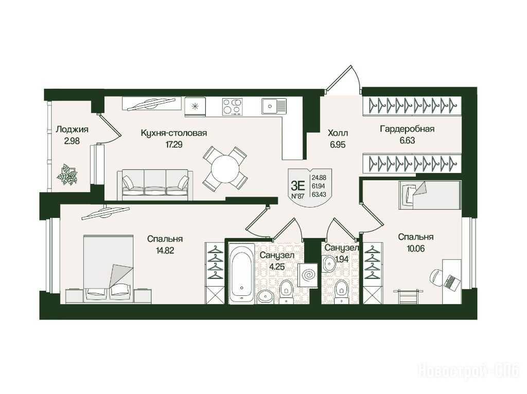 Продается двухкомнатная квартира в новостройке ЖК «Охтинские высоты» по адресу Ленинградская область, Всеволожский район, ул. Короткая, корп. 4. Общая площадь квартиры - 63.43 кв. м. Тип проекта, по которому построен дом — Монолитно-кирпичный, компания-застройщик — ООО «СЗ НОВОЕ ИЗМЕРЕНИЕ МИСТОЛОВО», ГК «Новое Измерение». Стоимость квартиры — 15 563 407 руб. Способы оплаты можно уточнить у продавца. Срок сдачи — 2 квартал 2027. Более подробная информация по телефону.