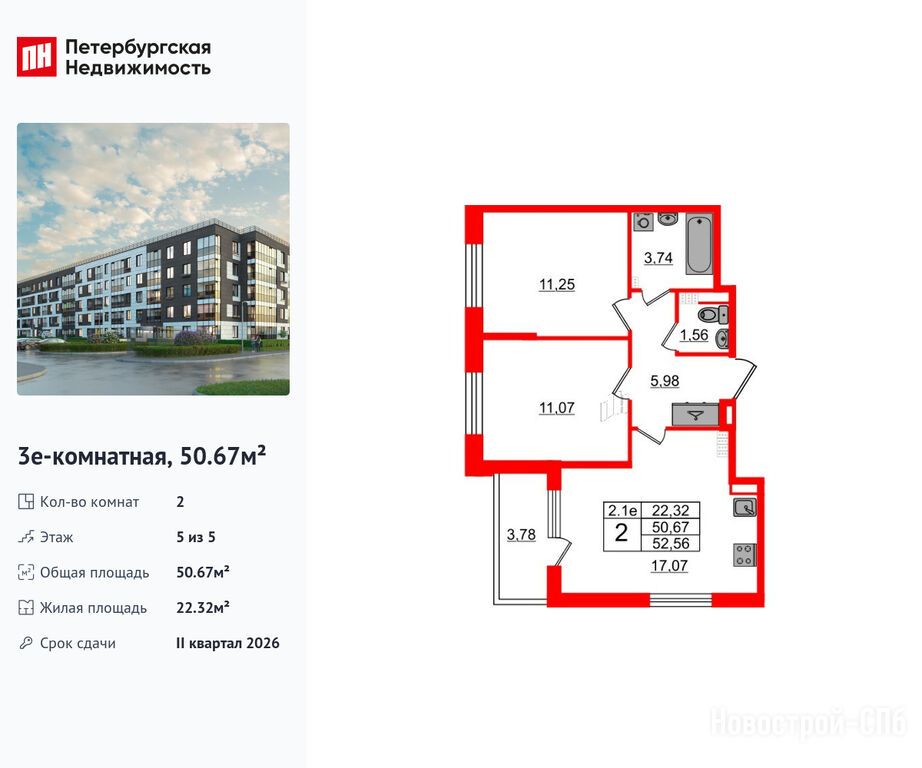 Продается двухкомнатная квартира в новостройке ЖК «Парадный ансамбль» по адресу Санкт-Петербург, Московский, Пулковское шоссе, участок 29, корпус 6.5. Общая площадь квартиры - 50.67 кв. м. Тип проекта, по которому построен дом — Монолитно-кирпичный, компания-застройщик — Setl Group (Сэтл Групп). Стоимость квартиры — 14 550 169 руб. Способы оплаты можно уточнить у продавца. Срок сдачи — 2 квартал 2026. Более подробная информация по телефону.