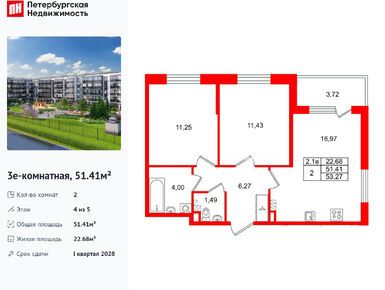 Продается двухкомнатная квартира в новостройке ЖК «Парадный ансамбль» по адресу Санкт-Петербург, Московский, Пулковское шоссе 103Х. Общая площадь квартиры - 51.15 кв. м. Тип проекта, по которому построен дом — Монолитно-кирпичный, компания-застройщик — Setl Group (Сэтл Групп). Стоимость квартиры — 13 450 199 руб. Способы оплаты можно уточнить у продавца. Срок сдачи — 1 квартал 2028. Более подробная информация по телефону.