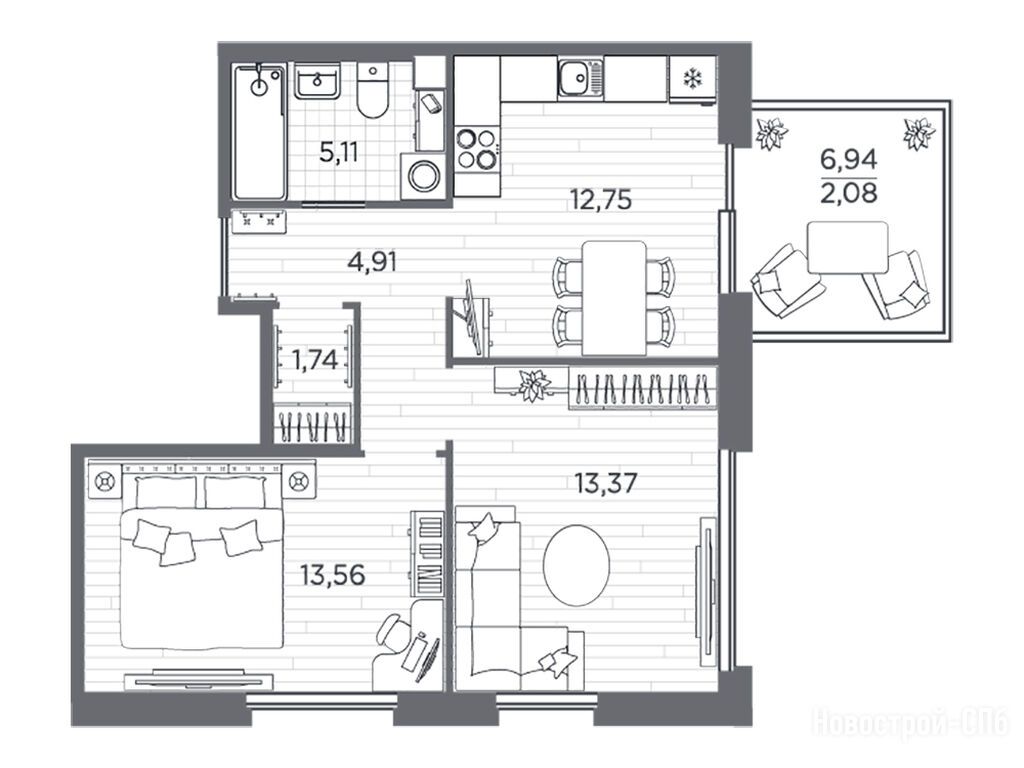 Продается двухкомнатная квартира в новостройке ЖК «Plus Пулковский» по адресу Санкт-Петербург, Московский, Пулковское шоссе, участок 24, корпус 7. Общая площадь квартиры - 53.52 кв. м. Тип проекта, по которому построен дом — Монолитно-кирпичный, компания-застройщик — ПСК. Стоимость квартиры — 11 956 368 руб. Способы оплаты можно уточнить у продавца. Срок сдачи — 2 квартал 2026. Более подробная информация по телефону.