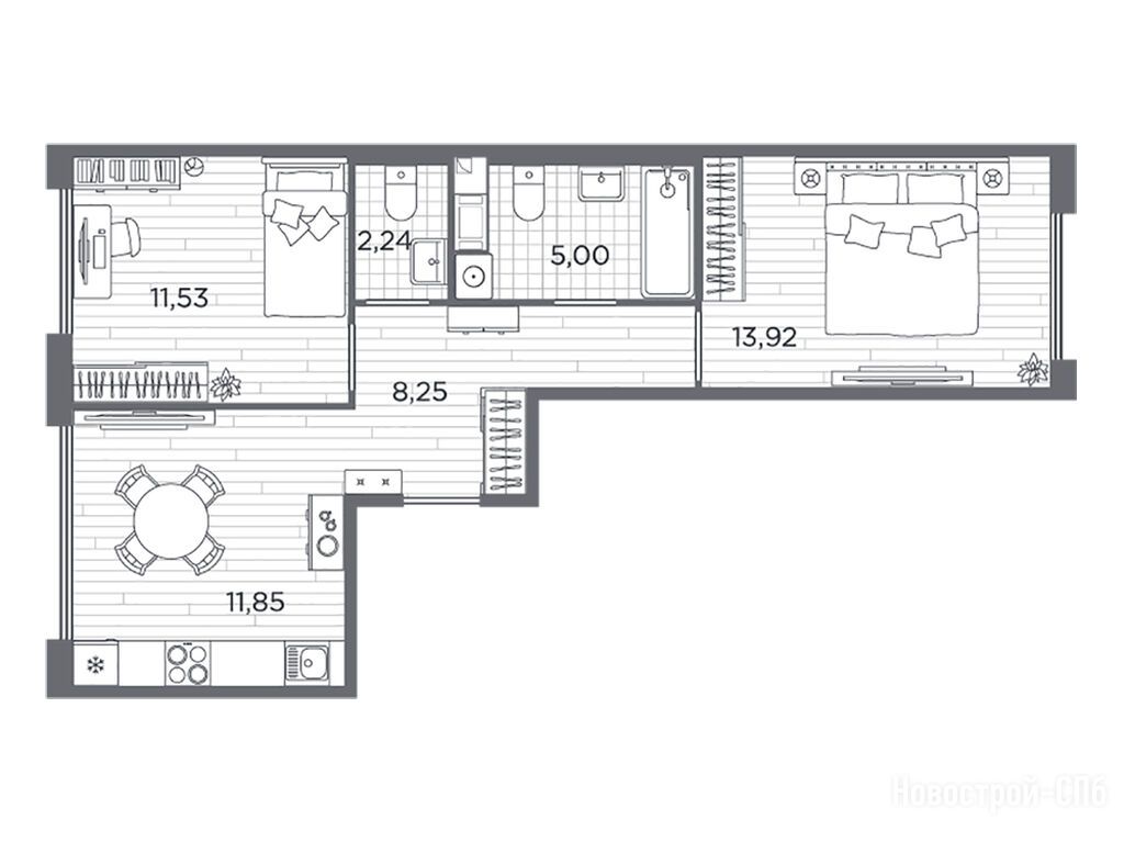 Продается двухкомнатная квартира в новостройке ЖК «Plus Пулковский» по адресу Санкт-Петербург, Московский, Пулковское шоссе, участок 24 корп.1. Общая площадь квартиры - 52.79 кв. м. Тип проекта, по которому построен дом — Монолитно-кирпичный, компания-застройщик — ПСК. Стоимость квартиры — 13 994 055 руб. Способы оплаты можно уточнить у продавца. Срок сдачи — 4 квартал 2025. Более подробная информация по телефону.