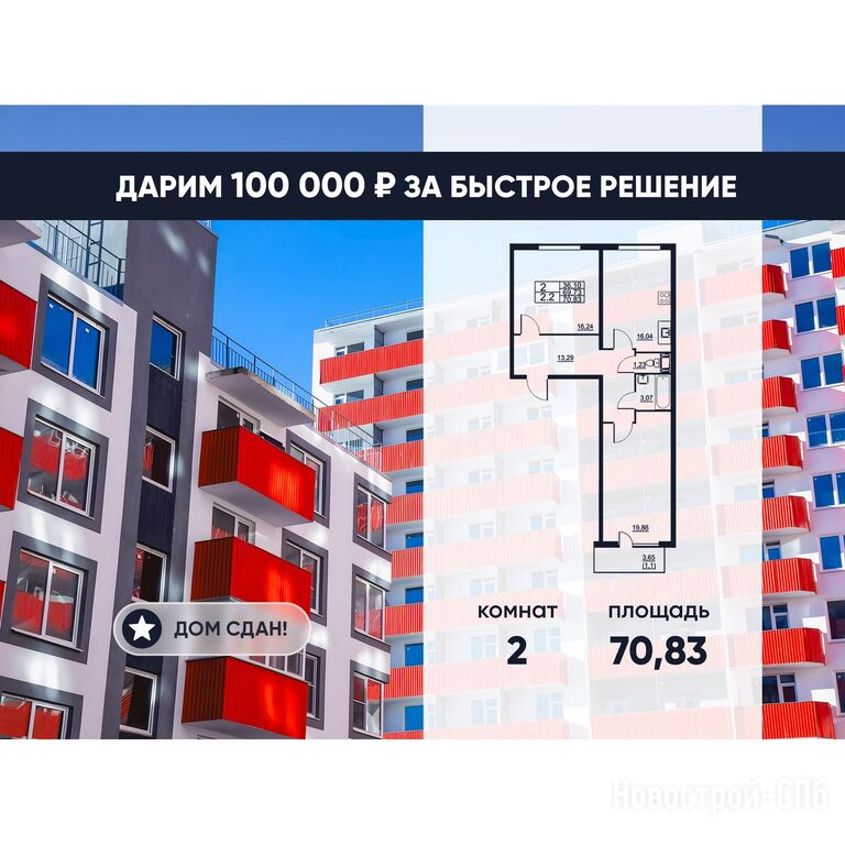 Продается двухкомнатная квартира в новостройке ЖК «Полёт» по адресу Санкт-Петербург, Пушкинский, Шушары пос., Московское шоссе, 262к4. Общая площадь квартиры - 68.7 кв. м. Тип проекта, по которому построен дом — Монолитно-кирпичный, компания-застройщик — ГК «Стоун», СТ Плюс. Стоимость квартиры — 8 838 600 руб. Способы оплаты можно уточнить у продавца. Более подробная информация по телефону.