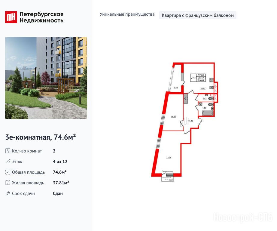 Продается двухкомнатная квартира в новостройке ЖК «Прайм Приморский» по адресу Санкт-Петербург, Приморский, Парашютная улица, 71к2. Общая площадь квартиры - 74.6 кв. м. Тип проекта, по которому построен дом — Монолитно-кирпичный, компания-застройщик — Setl Group (Сэтл Групп). Стоимость квартиры — 20 000 148 руб. Способы оплаты можно уточнить у продавца. Более подробная информация по телефону.