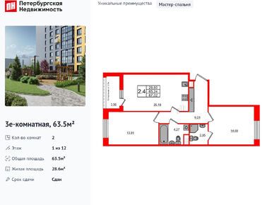 Продается двухкомнатная квартира в новостройке ЖК «Прайм Приморский» по адресу Санкт-Петербург, Приморский, ул. Парашютная, ЖК «Прайм Приморский», корпус 3. Общая площадь квартиры - 92.82 кв. м. Тип проекта, по которому построен дом — Монолитно-кирпичный, компания-застройщик — Setl Group (Сэтл Групп). Стоимость квартиры — 22 750 739 руб. Способы оплаты можно уточнить у продавца. Срок сдачи — 1 квартал 2026. Более подробная информация по телефону.