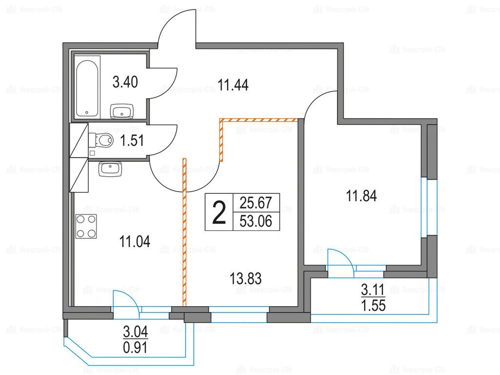 Продается двухкомнатная квартира в новостройке ЖК «Приморский квартал» по адресу Санкт-Петербург, Приморский, Коломяжский проспект, 13к3. Общая площадь квартиры - 53.06 кв. м. Тип проекта, по которому построен дом — Монолит,Монолитно-кирпичный, компания-застройщик — Мегалит – Охта Групп. Стоимость квартиры — 18 533 706 руб. Способы оплаты можно уточнить у продавца. Более подробная информация по телефону.
