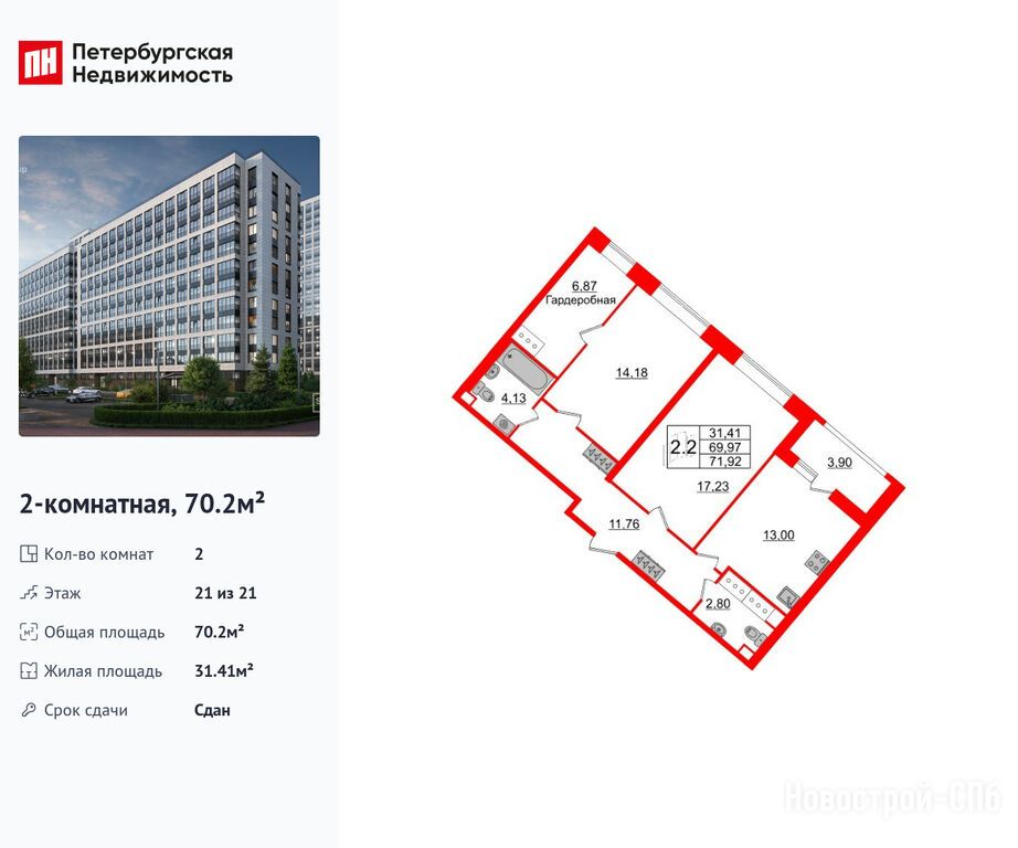 Продается двухкомнатная квартира в новостройке ЖК Pulse Premier (Пульс Премьер) по адресу Санкт-Петербург, Невский, Архивная улица, 6. Общая площадь квартиры - 70.2 кв. м. Тип проекта, по которому построен дом — Монолитно-кирпичный, компания-застройщик — Setl Group (Сэтл Групп). Стоимость квартиры — 23 150 170 руб. Способы оплаты можно уточнить у продавца. Более подробная информация по телефону.