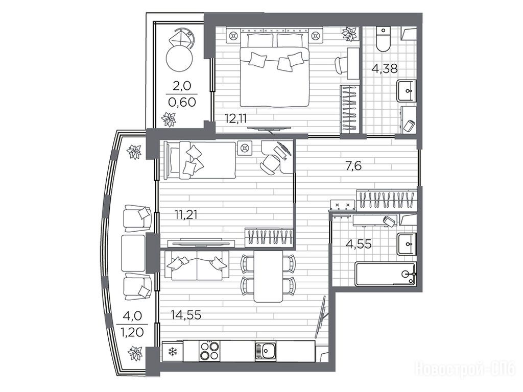 Забронировали трехкомнатную квартиру со светлой отделкой. Два сан узла, балкон, кухня-гостиная почти 19,м2. Понравилась идея с общественными террасами. Там посадят кустарники, обустроят лаунж-зоны, поставят столики, стулья. Можно будет и погулять и поработать
