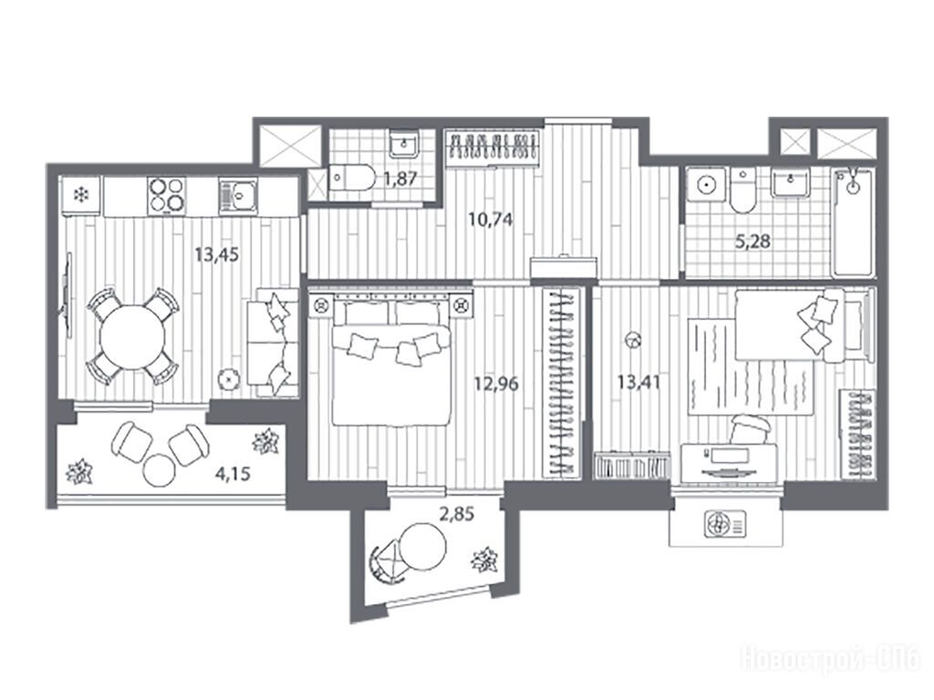 Забронировали трехкомнатную квартиру со светлой отделкой. Два сан узла, балкон, кухня-гостиная почти 19,м2. Понравилась идея с общественными террасами. Там посадят кустарники, обустроят лаунж-зоны, поставят столики, стулья. Можно будет и погулять и поработать
