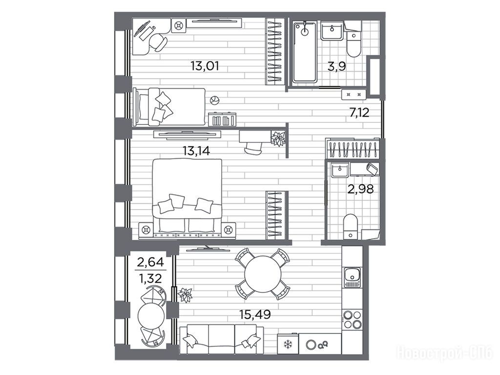 Продается двухкомнатная квартира в новостройке ЖК Respect (Респект) по адресу Санкт-Петербург, Калининский, Полюстровский пр., 87 (корп. 6). Общая площадь квартиры - 56.96 кв. м. Тип проекта, по которому построен дом — Монолитно-кирпичный, компания-застройщик — ПСК. Стоимость квартиры — 19 668 780 руб. Способы оплаты можно уточнить у продавца. Срок сдачи — 4 квартал 2026. Более подробная информация по телефону.