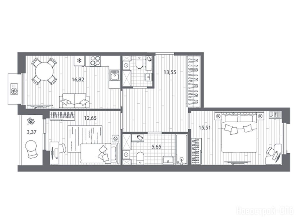 Забронировали трехкомнатную квартиру со светлой отделкой. Два сан узла, балкон, кухня-гостиная почти 19,м2. Понравилась идея с общественными террасами. Там посадят кустарники, обустроят лаунж-зоны, поставят столики, стулья. Можно будет и погулять и поработать