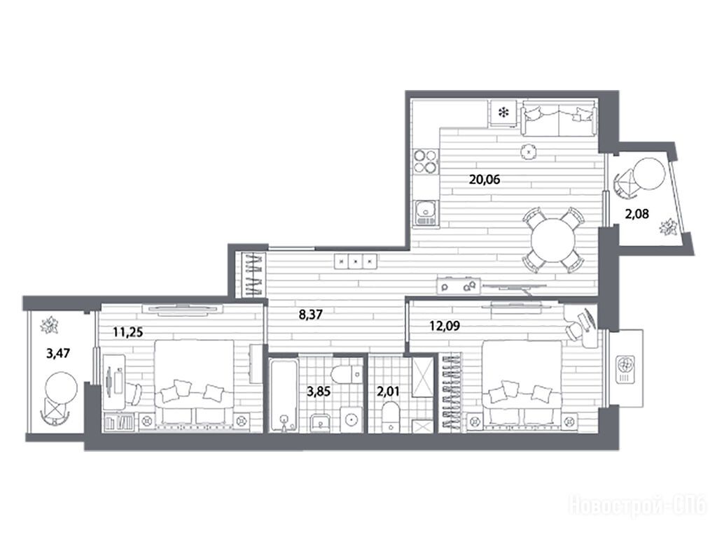 Забронировали трехкомнатную квартиру со светлой отделкой. Два сан узла, балкон, кухня-гостиная почти 19,м2. Понравилась идея с общественными террасами. Там посадят кустарники, обустроят лаунж-зоны, поставят столики, стулья. Можно будет и погулять и поработать