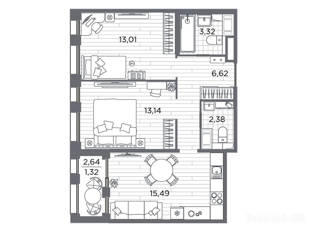 Забронировали трехкомнатную квартиру со светлой отделкой. Два сан узла, балкон, кухня-гостиная почти 19,м2. Понравилась идея с общественными террасами. Там посадят кустарники, обустроят лаунж-зоны, поставят столики, стулья. Можно будет и погулять и поработать