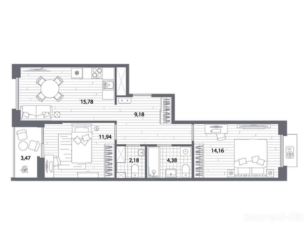 Забронировали трехкомнатную квартиру со светлой отделкой. Два сан узла, балкон, кухня-гостиная почти 19,м2. Понравилась идея с общественными террасами. Там посадят кустарники, обустроят лаунж-зоны, поставят столики, стулья. Можно будет и погулять и поработать