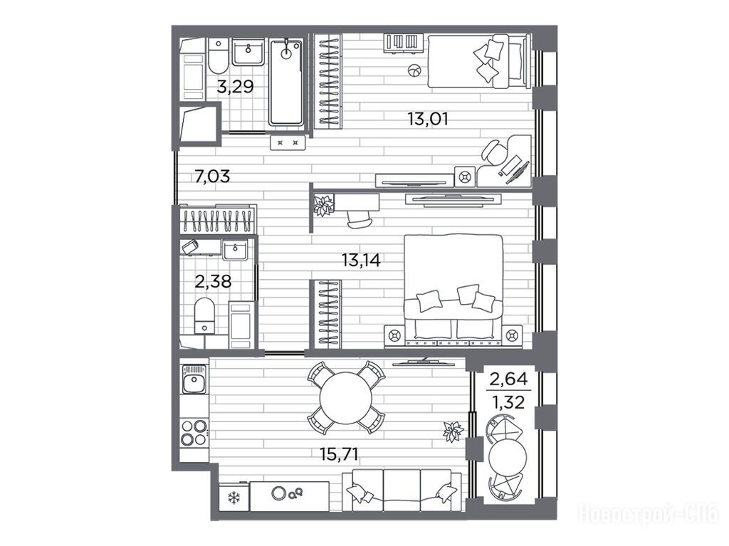 Продается двухкомнатная квартира в новостройке ЖК Respect (Респект) по адресу Санкт-Петербург, Калининский, Полюстровский пр., 87 (корп. 6). Общая площадь квартиры - 55.88 кв. м. Тип проекта, по которому построен дом — Монолитно-кирпичный, компания-застройщик — ПСК. Стоимость квартиры — 19 600 435 руб. Способы оплаты можно уточнить у продавца. Срок сдачи — 4 квартал 2026. Более подробная информация по телефону.