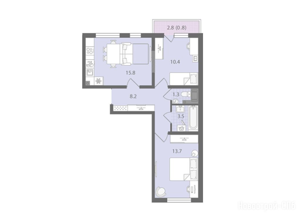 3-комн. квартира 66,80 м2 15 971 880