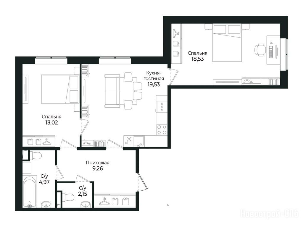 Очень впечатлили планировки – всё логично, светло, никакой лишней площади. А инфраструктура комплекса – детские сады, магазины, паркинг – делает жизнь здесь еще приятнее