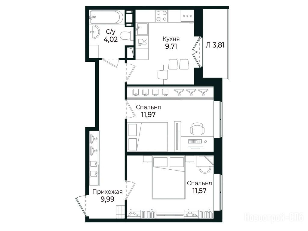 Продается двухкомнатная квартира в новостройке ЖК «Сертолово Парк» (SERTOLOVO PARK) по адресу Ленинградская область, Всеволожский район, ул. Центральная ,д. 11. Общая площадь квартиры - 46.8 кв. м. Тип проекта, по которому построен дом — Монолитно-каркасный, компания-застройщик — Алгоритм Девелопмент. Стоимость квартиры — 9 396 738 руб. Способы оплаты можно уточнить у продавца. Более подробная информация по телефону.