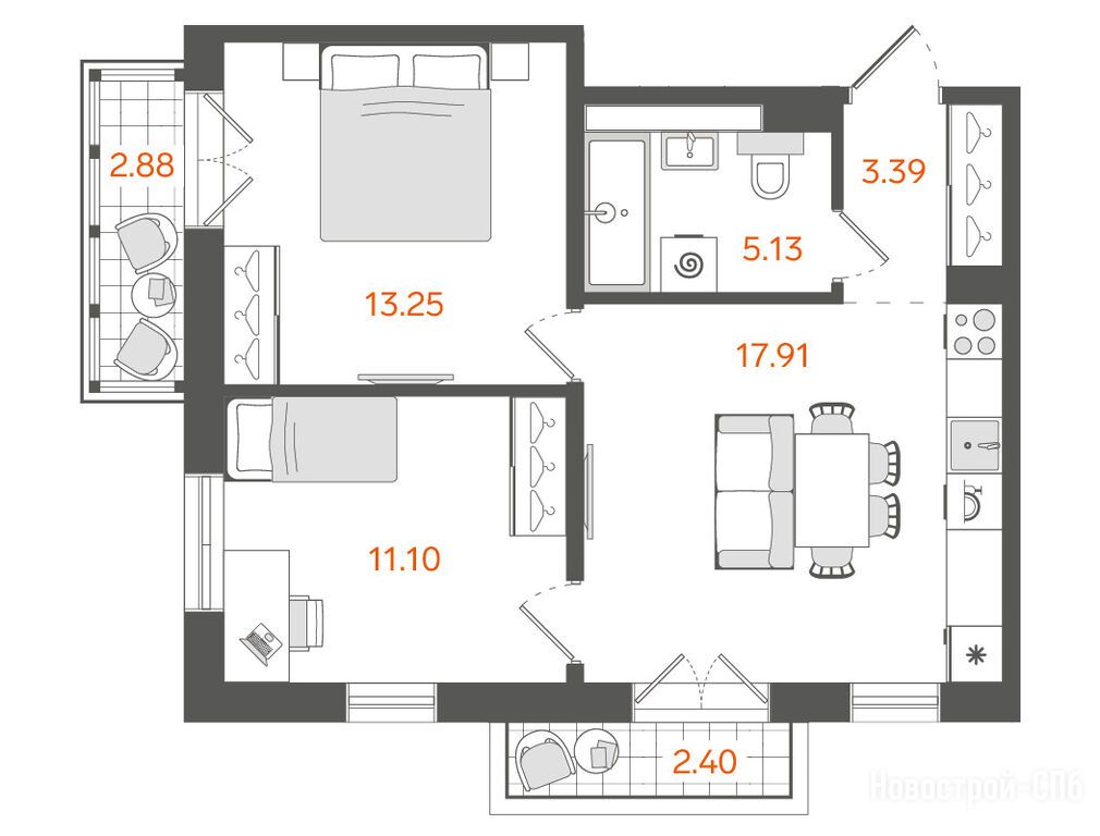 Продается двухкомнатная квартира в новостройке ЖК «Ставни Обводный» по адресу Санкт-Петербург, Адмиралтейский, наб. Обводного канала, д. 118а, лит С. Общая площадь квартиры - 50.59 кв. м. Тип проекта, по которому построен дом — Монолитно-панельный, компания-застройщик — ГК STAVNI, ООО СПЗ «Ставни Обводный». Стоимость квартиры — 24 446 979 руб. Способы оплаты можно уточнить у продавца. Срок сдачи — 4 квартал 2028. Более подробная информация по телефону.