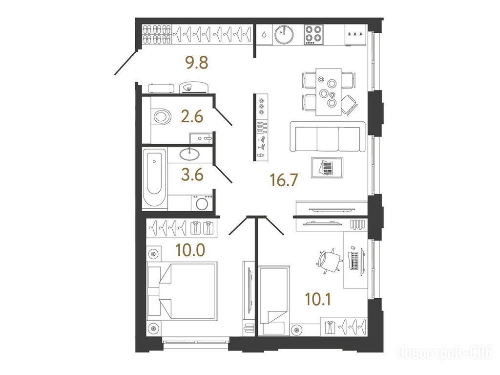 Купила себе свое первое жилье - однушку в Струнах. Выбирала по локации и планировке. Самое главное что есть большая кухня, больше 20 метров. Просто не понимаю, когда кухня маленькая, где принимать гостей, не в спальне же… а так пространство зонировано, по проекту половина кухни предназначена для приема пищи и отдыха, половина - для приготовления еды.