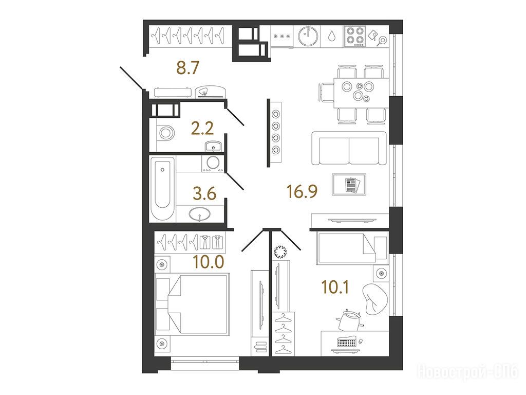 Купила себе свое первое жилье - однушку в Струнах. Выбирала по локации и планировке. Самое главное что есть большая кухня, больше 20 метров. Просто не понимаю, когда кухня маленькая, где принимать гостей, не в спальне же… а так пространство зонировано, по проекту половина кухни предназначена для приема пищи и отдыха, половина - для приготовления еды.
