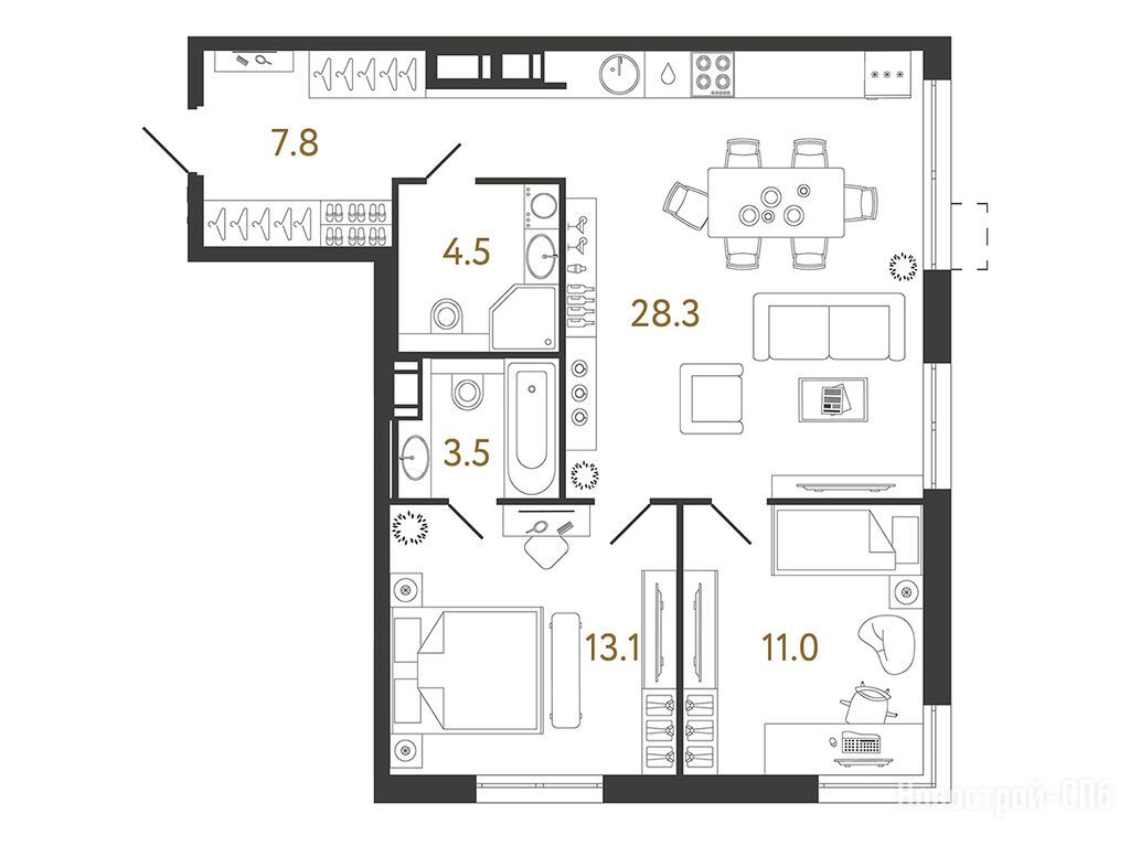 Купила себе свое первое жилье - однушку в Струнах. Выбирала по локации и планировке. Самое главное что есть большая кухня, больше 20 метров. Просто не понимаю, когда кухня маленькая, где принимать гостей, не в спальне же… а так пространство зонировано, по проекту половина кухни предназначена для приема пищи и отдыха, половина - для приготовления еды.
