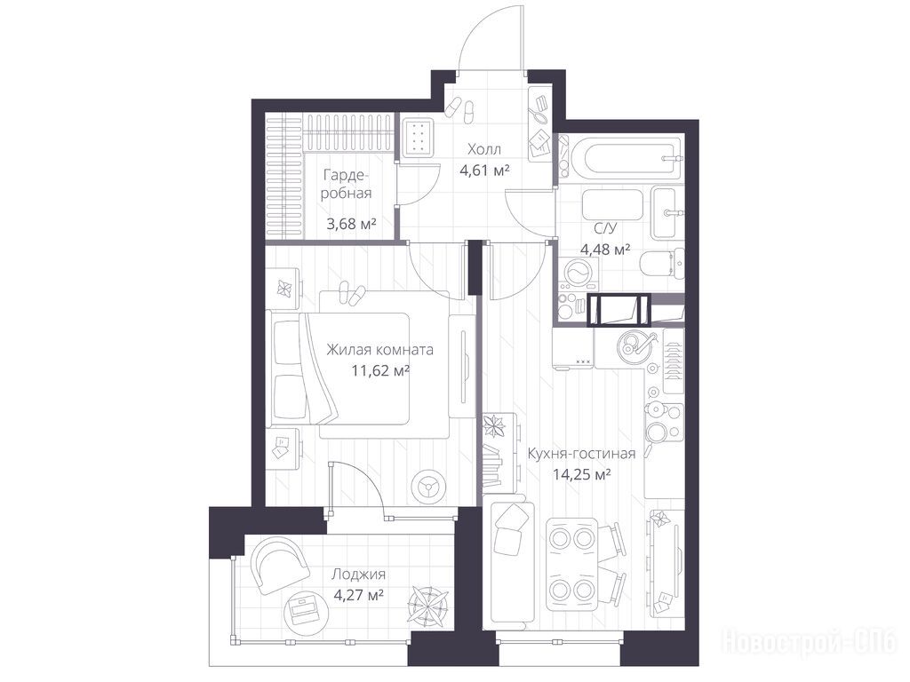 студия 22,50 м2 4 275 738