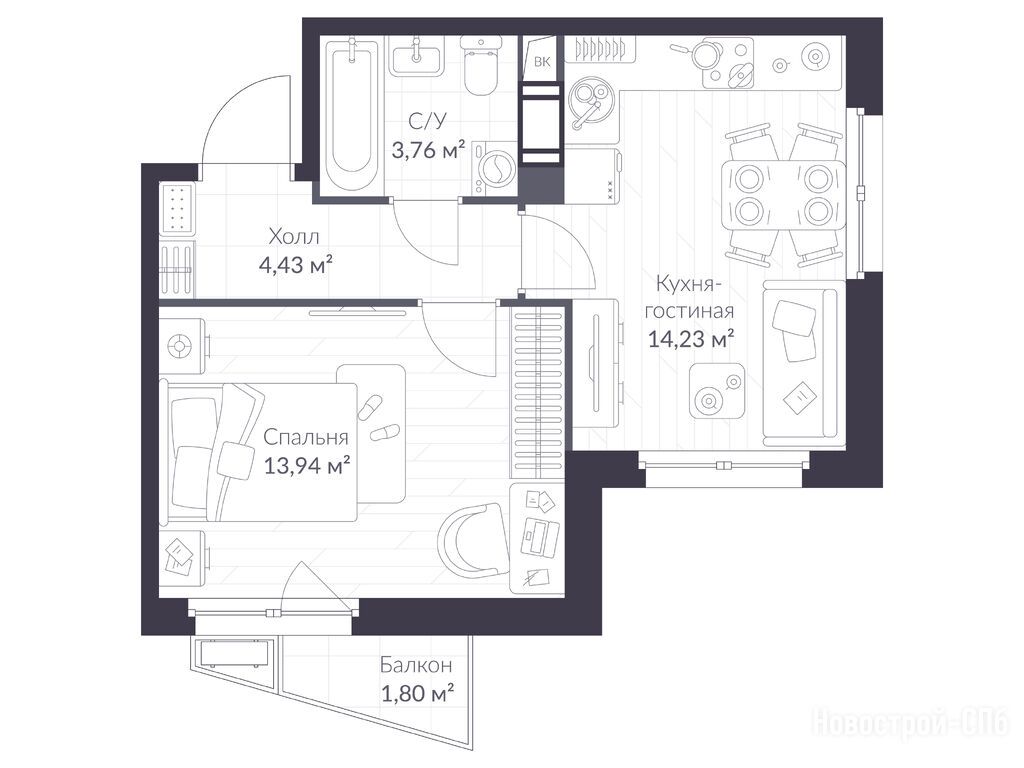 2-комн. квартира 35,18 м2 5 666 717