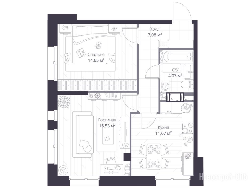 3-комн. квартира 49,11 м2 7 693 369