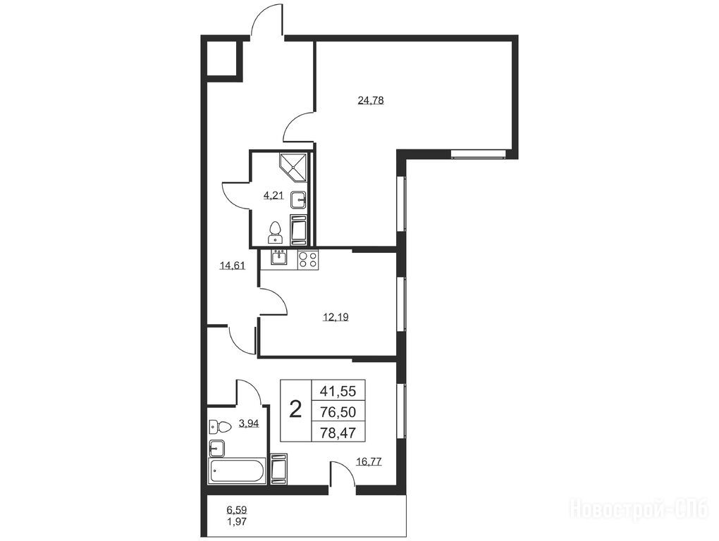 Продается двухкомнатная квартира в новостройке ЖК «Высота» (Бугры) по адресу Ленинградская область, Всеволожский район, Бугровское С/П, Бугры, Школьная ул., ЖК «Высота». Общая площадь квартиры - 78.47 кв. м. Тип проекта, по которому построен дом — Монолитно-кирпичный, компания-застройщик — ГК «Стоун». Стоимость квартиры — 11 187 740 руб. Способы оплаты можно уточнить у продавца. Срок сдачи — 4 квартал 2028. Более подробная информация по телефону.