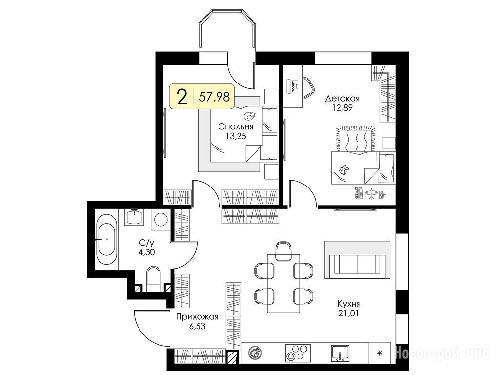Продается двухкомнатная квартира в новостройке ЖК «Всевгород» по адресу Ленинградская область, Всеволожский район, поселок Романовка, ЖК «Всевгород», корпус 1.1. Общая площадь квартиры - 57.98 кв. м. Тип проекта, по которому построен дом — Монолитно-кирпичный, компания-застройщик — Группа компаний «Консоль», ООО СЗ РОМАНОВКА 1. Стоимость квартиры — 9 079 668 руб. Способы оплаты можно уточнить у продавца. Срок сдачи — 4 квартал 2027. Более подробная информация по телефону.