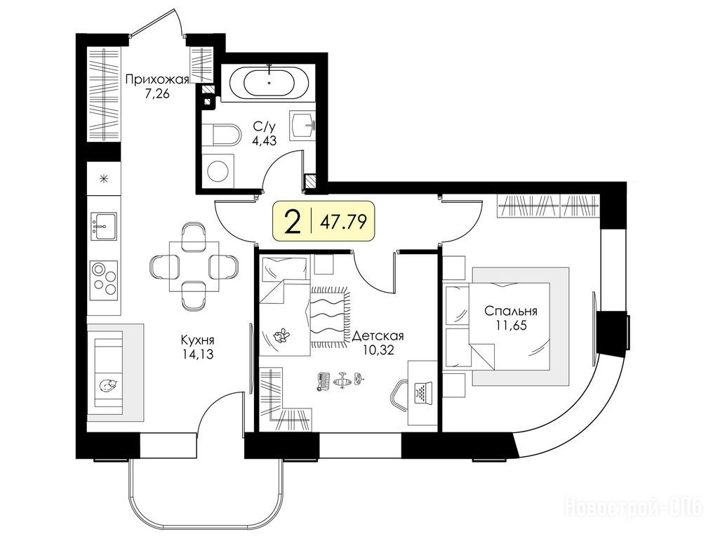 Продается двухкомнатная квартира в новостройке ЖК «Всевгород» по адресу Ленинградская область, Всеволожский район, поселок Романовка, ЖК «Всевгород», корпус 1.1. Общая площадь квартиры - 47.79 кв. м. Тип проекта, по которому построен дом — Монолитно-кирпичный, компания-застройщик — Группа компаний «Консоль», ООО СЗ РОМАНОВКА 1. Стоимость квартиры — 7 906 856 руб. Способы оплаты можно уточнить у продавца. Срок сдачи — 4 квартал 2027. Более подробная информация по телефону.